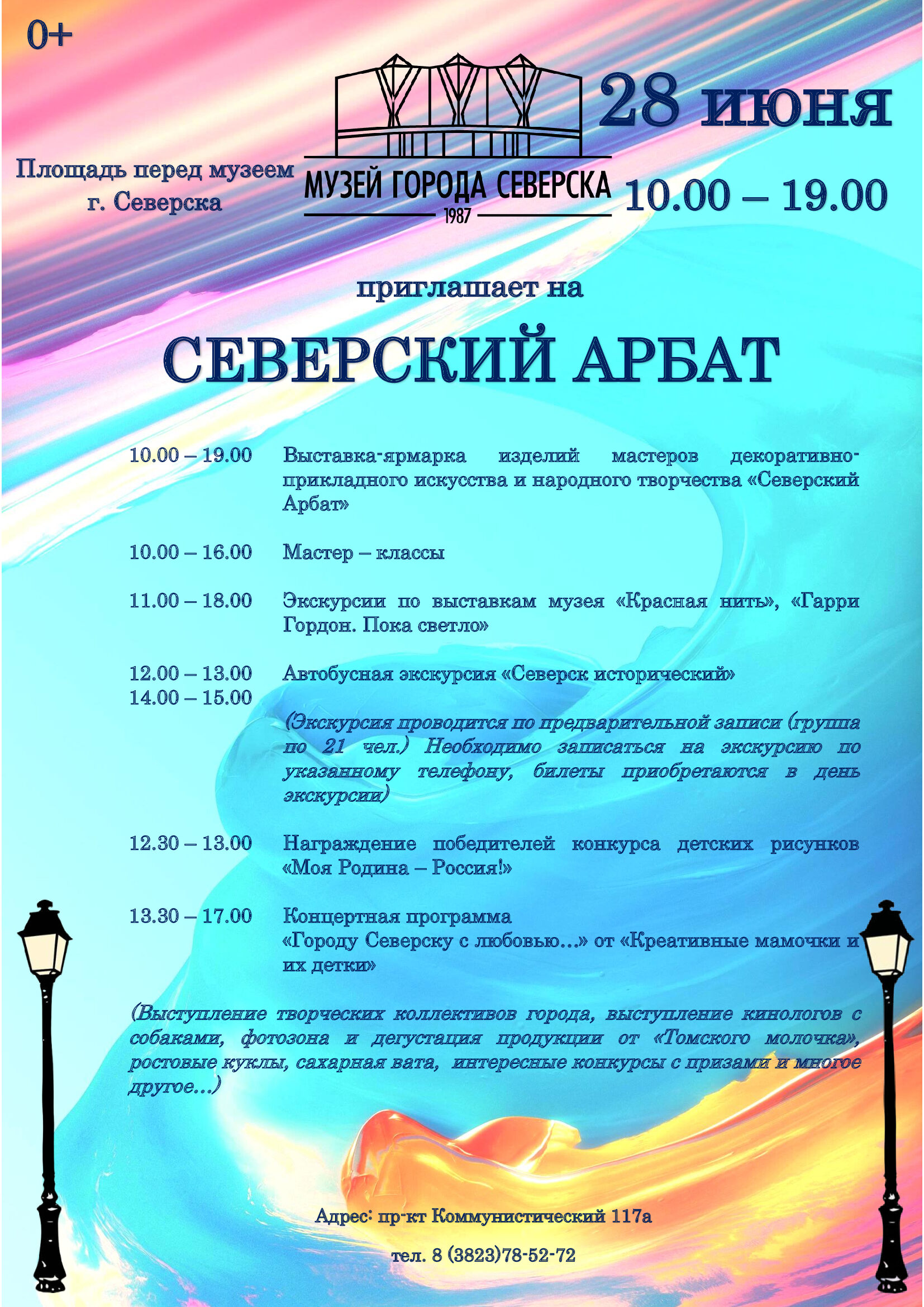 🎆 28 июня приглашаем вас присоединиться к празднованию Дня города и Дня молодёжи на "Северском Арбате" перед центральным входом в музей г. Северска.